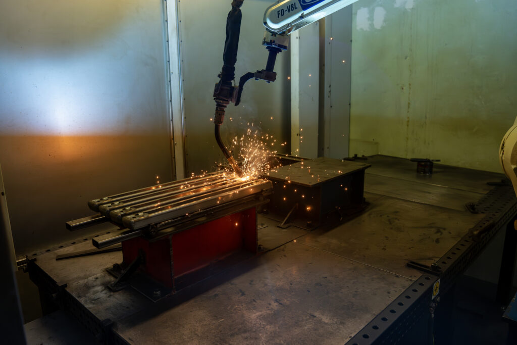 Svařování pomocí CNC robotizovaného šestiosého robota. Spojování malokusových atypických dílů realizujeme pomocí technologií CO2 a TIG.