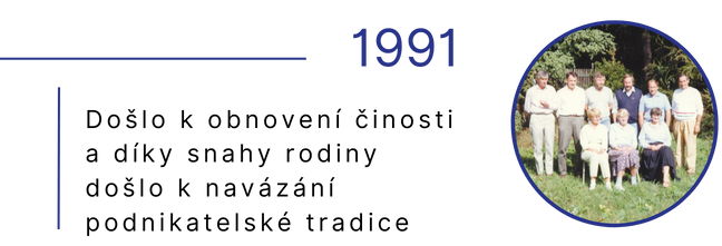 Obnovení činnosti nastalo až v roce 1991 díky snaze rodiny navázat na podnikatelskou tradici. Vkladem společníků a úvěrem od České spořitelny a.s. byly vytvořeny podmínky pro financování nových výrobních programů. V roce 1993 firma zahájila výrobu kovových částí ke kancelářskému nábytku pro společnosti NO+BL Praha, Schejbal Choceň a Dřevotvar Znojmo.